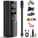 Portable Tire Inflator for Car Tires, 150 PSI Cordless Air Compressor with Digital Pressure Gauge, Auto Shut Off & LED Light, Fast Inflation Electric Air Pump for Car, Bike, Motorcycle, Ball (Black-B)