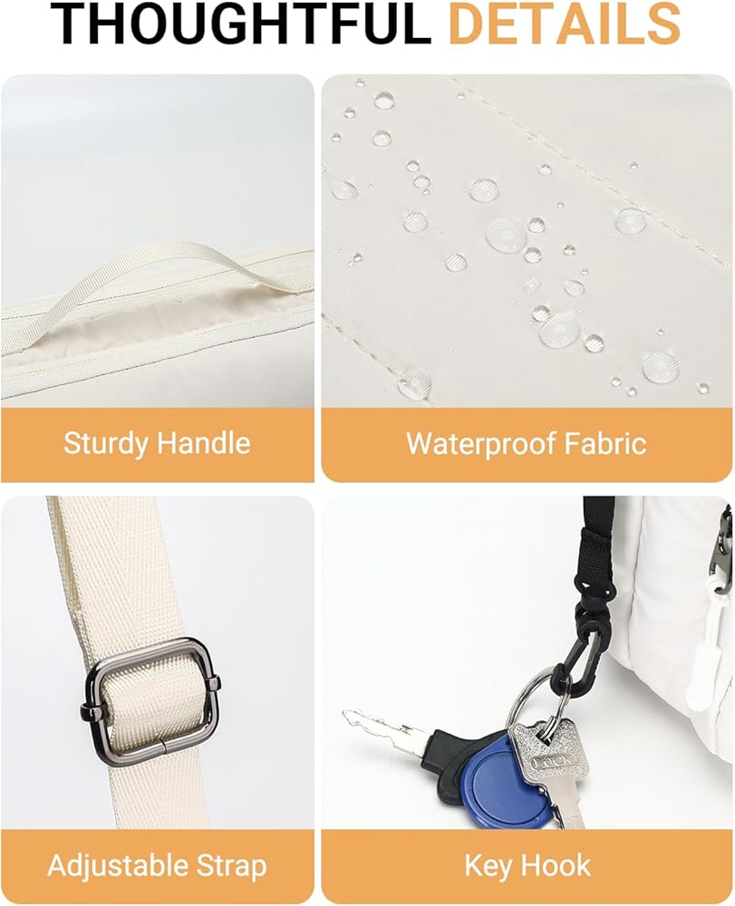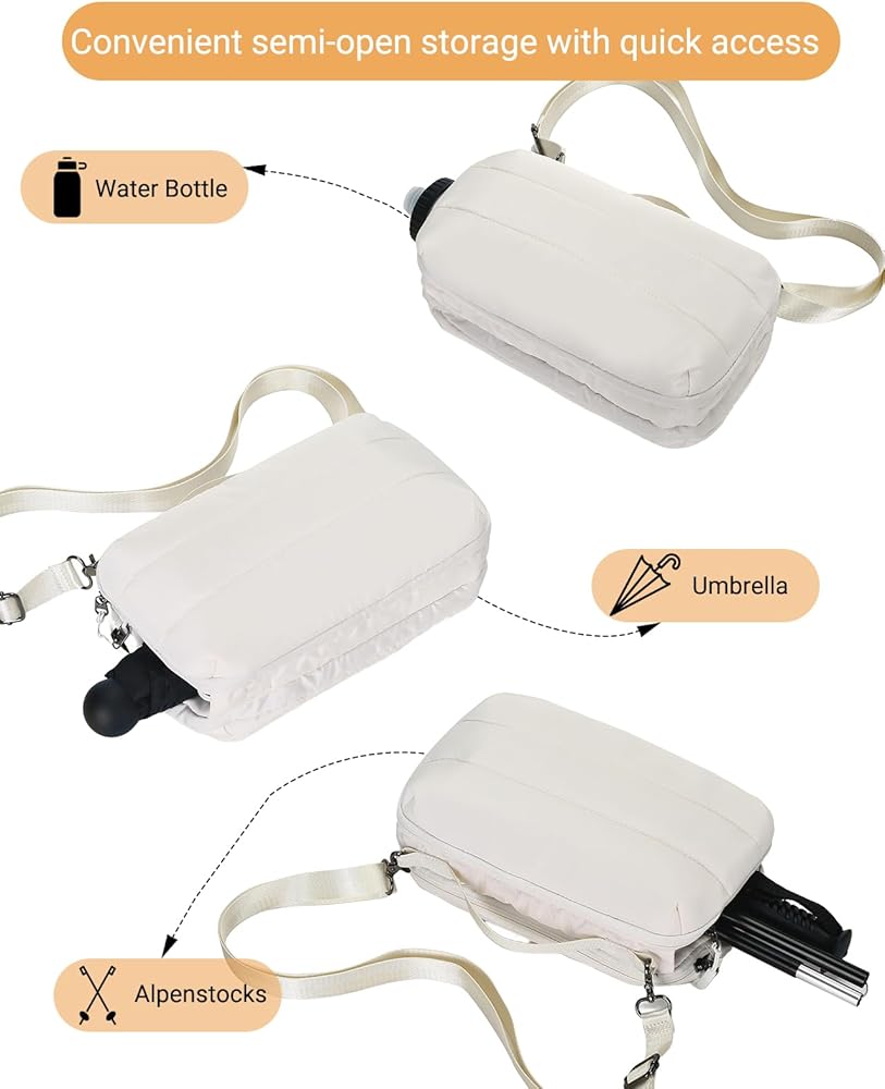 [Splash-Resistant Fabric & Lightweight Material]: This puff crossbody purse is made of water-resistant nylon fabric with cotton padding, making it featherlight and soft. Even when carried for long periods, it won't cause fatigue. Additionally, the material is easy to clean—if it gets dirty, simply wipe it gently with a damp cloth or tissue, and it will look as good as new.