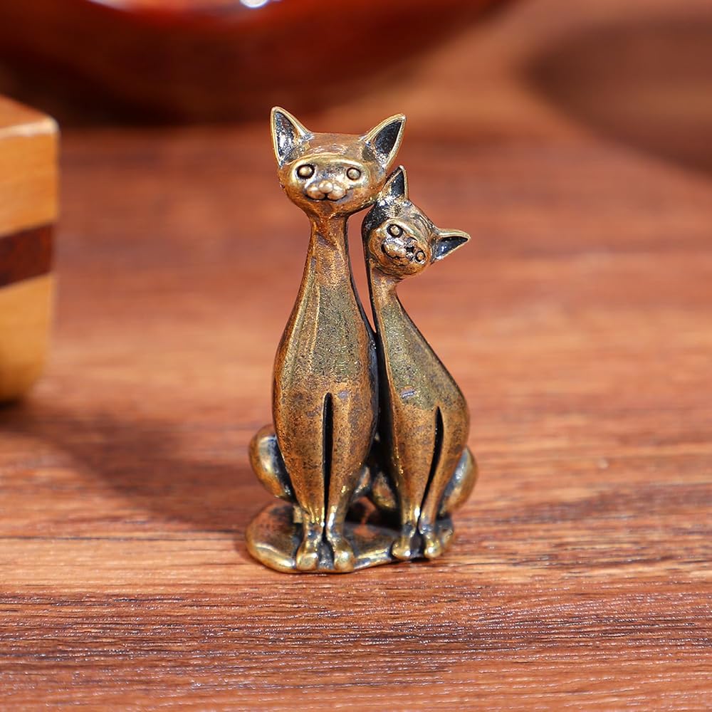 【Vintage Design】This Couple Cat Ornament features an exquisite vintage brass sculpture, capturing the essence of intertwined loving cats in a timeless art piece.