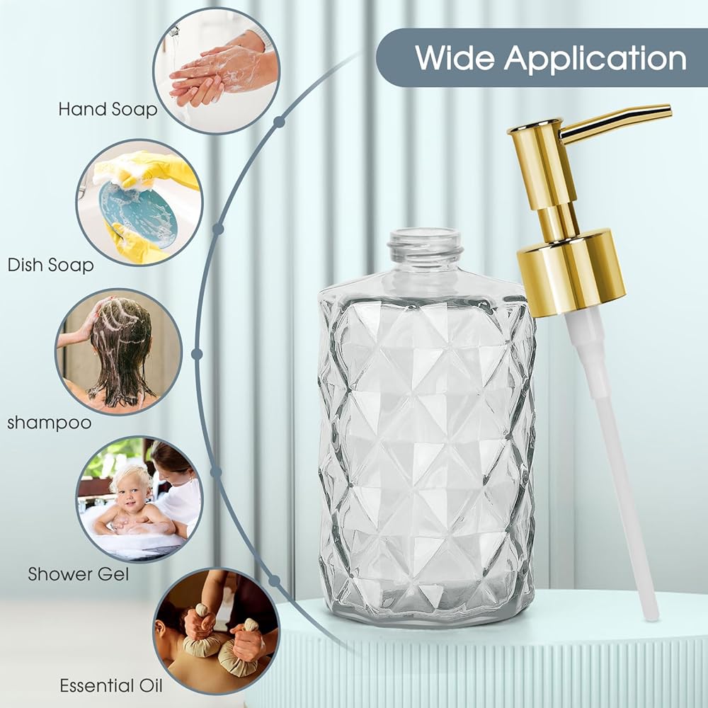 【Easy to use and clean】Unscrew the pump head of the emulsion bottle to easily fill the liquid, and you can obtain the right amount of liquid by gently pressing it during use. Bathroom soap dispenser is easy to clean, just gently unscrew the pump head to quickly clean and rinse.