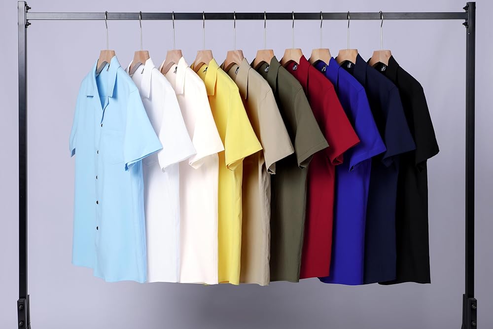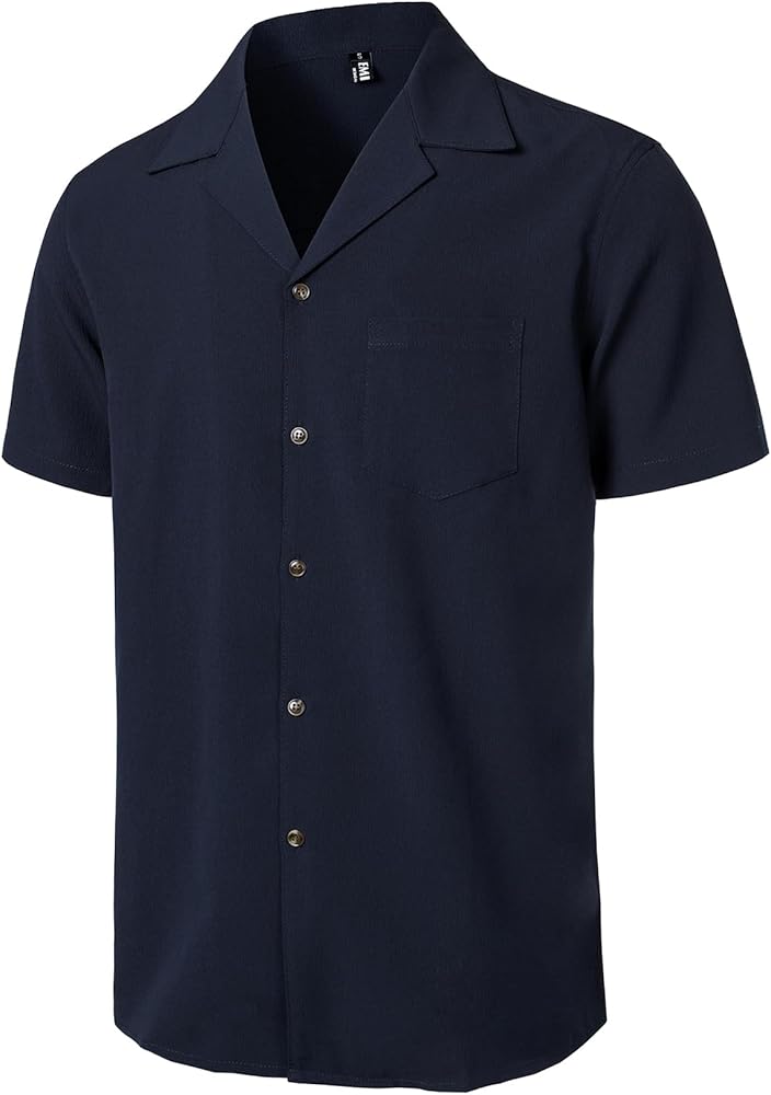 Stylish Cuban Shirts: Our short sleeve shirts feature a classic Cuban collar design, button down closure, and a patch pocket for your phone and sunglasses, providing a look that's both classic and trendy for your vacation