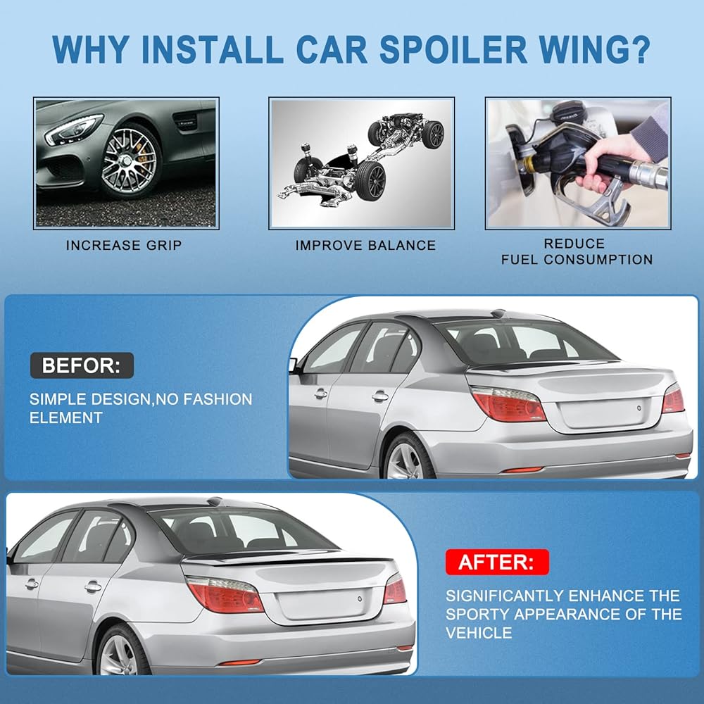 EASY TO INSTALL -This trunk spoiler uses car-specific adhesive. Just glue it to your model. Simple and practical, no hole stamping, non-destructive installation.