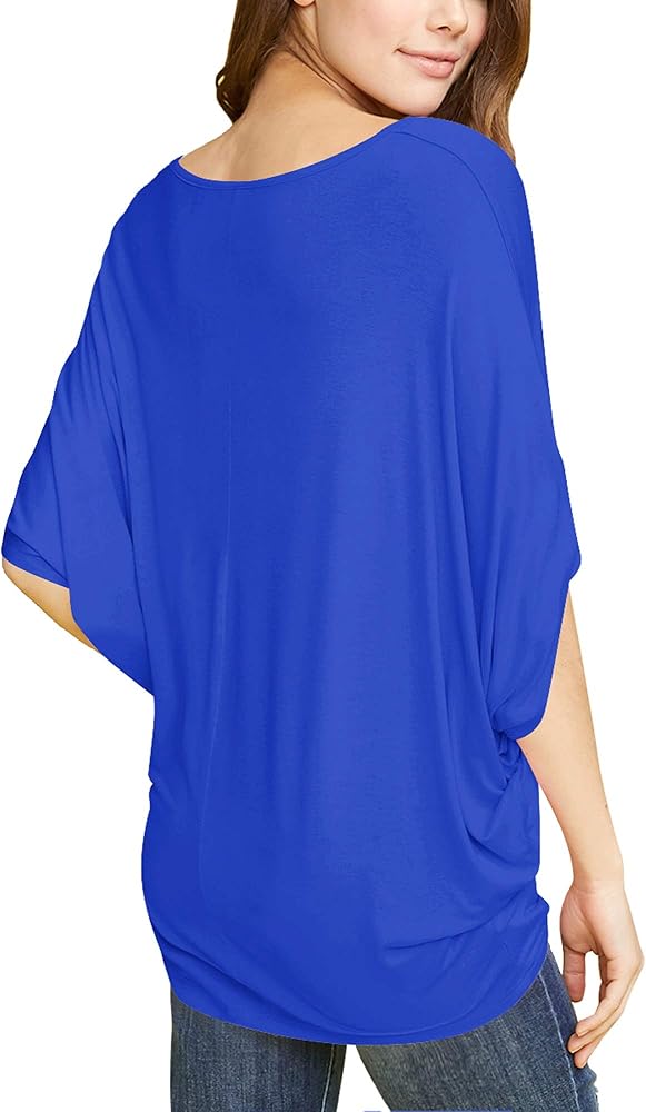 Lock and Love Women's Solid / Ombre Scoop Neck Short Sleeve Loose Blouse Batwing Dolman Top oversize / This dip dye batwing dolman top in soft fabric with half sleeves and a comfy loose fit. This oversized loose fit top features scoop neck, draped design and soft fabric with great stretch.