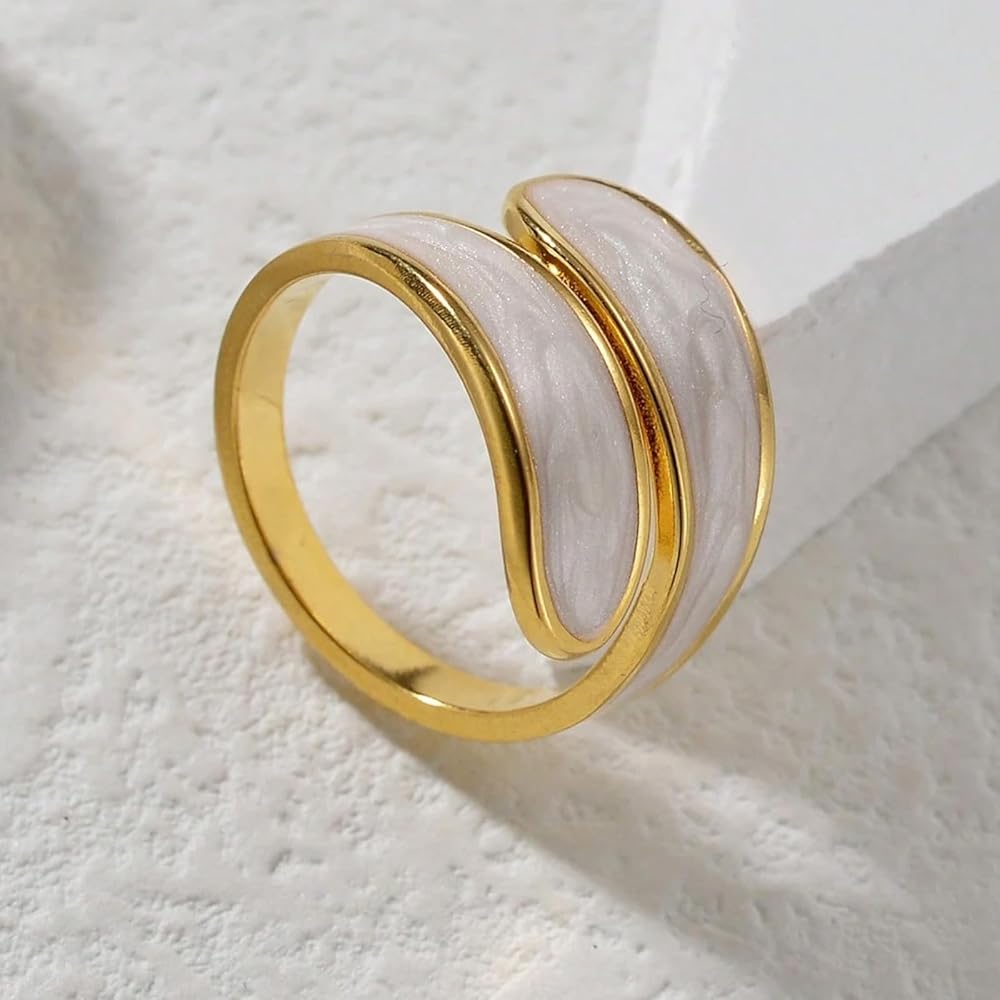 【GOLD RINGS FOR WOMEN】This ring is a style game - changer! Its double - band, curved shape with a sleek gold frame and pearlescent - white inlay creates a modern, chic look. Whether you're dressing up for a fancy dinner or adding edge to casual wear, it instantly elevates your outfit. A true head - turner that makes you stand out in any crowd. 【CHUNKY RINGS】Crafted with high - quality metal and durable inlay, this ring is built to last. The gold plating resists tarnishing, keeping its shine for ages. The smooth, hypoallergenic material is gentle on skin, ensuring comfy all - day wear. No worries about discoloration or irritation—just lasting beauty and comfort. 【STATEMENT RING】Perfect for stacking or wearing solo! Mix it with dainty rings for a trendy layered vibe, or let it shine alone as a statement piece. Matches any style—from minimalist to bold. Ideal for everyday use, parties, or as a gift. A must - have addition to your jewelry collection that adapts to every mood and occasion. 【BIRTHDAY GIFTS FOR WOMEN】Searching for a memorable gift? This ring is it! Its unique design and elegant appeal suit birthdays, anniversaries, or “just because” moments. Comes in a lovely package, ready to delight your loved ones. A thoughtful present that shows you care, leaving a lasting impression. 【AFTER-SELL SERVICE】If you are not satisfied with our products, please to contact us. We will reply within 24 hours and do our best to solve your problem.
