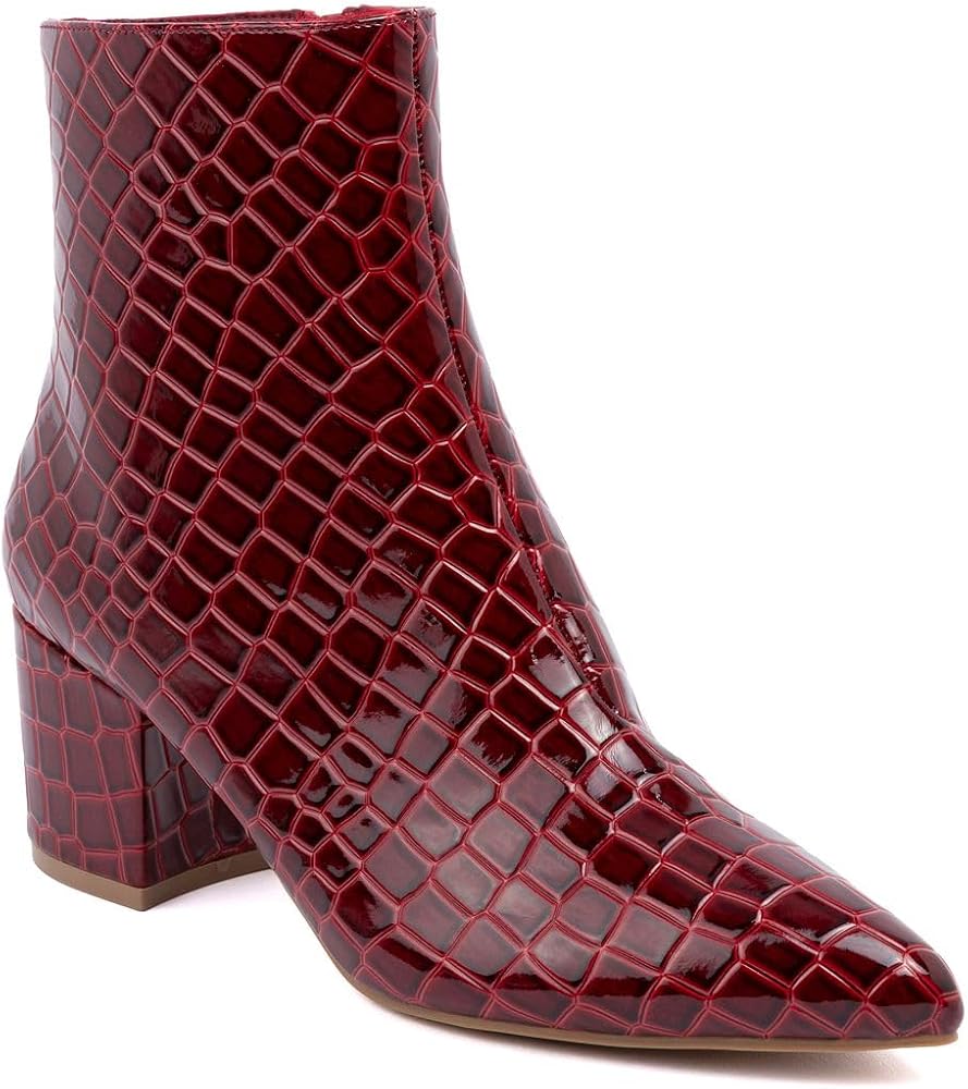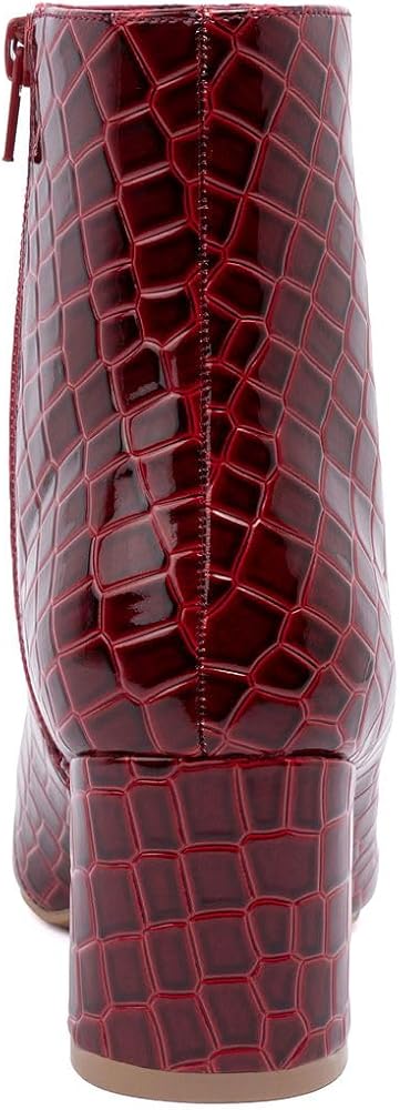 Sugar Women's Block Heel Ankle Booties – Round Toe Zip-Up Dress Boots for Going Out, Fall Fashion, and Nightlife Looks Striking the right balance between bold and wearable, the Sugar Nightlife ankle boot gives your fall and winter wardrobe a shot of attitude. Its soft synthetic upper wraps the foot in a smooth silhouette, finished with a clean round toe and sleek side zipper for easy on and off. Whether you're styling it with cropped denim or a night-out mini, the streamlined shape holds its own. The four-inch block heel adds height without the wobble, giving you that extra lift while staying walkable from dinner to wherever the night takes you. A cushioned footbed and PU lining keep things comfortable underneath, so you're not thinking about your feet halfway through the evening. The shaft hits mid-ankle, structured enough to support, slim enough to flatter. Built on Sugar's NIGHTLIFE construction, this boot blends confident style with no-fuss function. It's spot-clean friendly and holds its shape wear after wear. From crisp weather layering to last-minute plans, it's the kind of boot you'll reach for without overthinking it.
