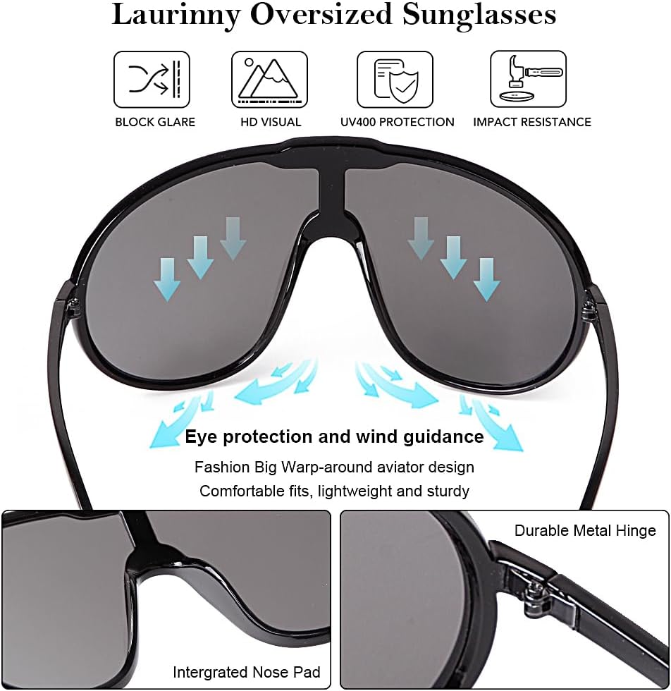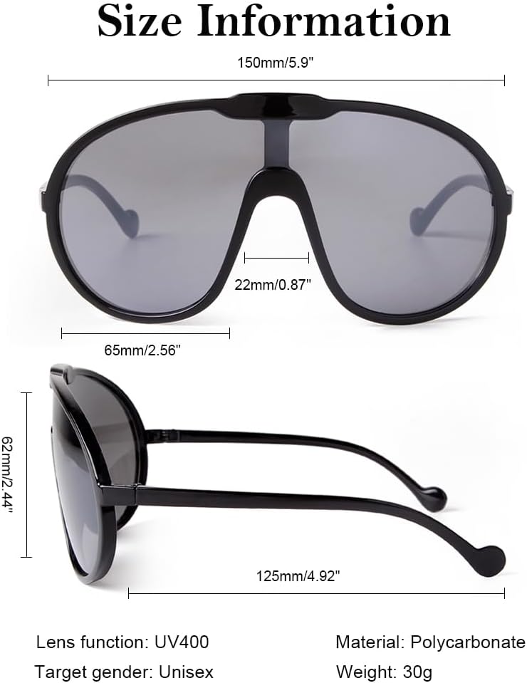 Fashion Oversized Sunglasses Womens: Embrace the latest fashion trends with large shield design, featuring a unique and striking big aviator shape that complements various face shapes. With their bold, oversized frame, these stylish shades women sunglasses instantly elevate any look - from casual daytime outfits to chic evening ensembles