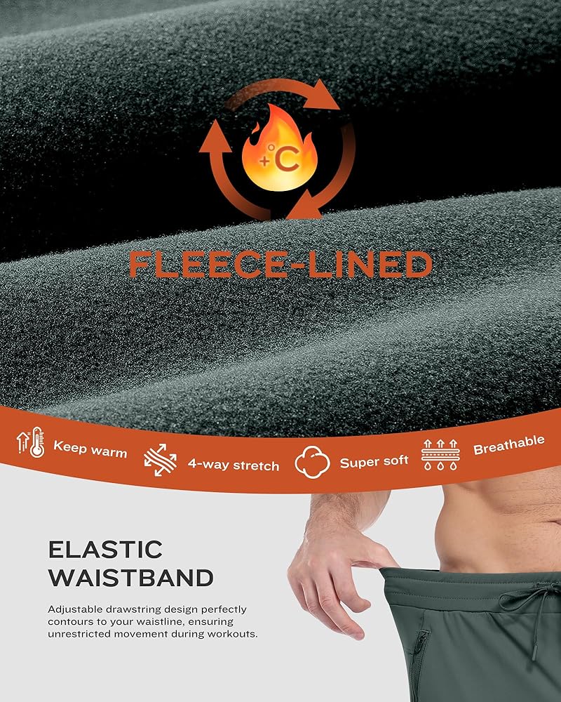 Fleece Lined Interior, Perfect for skiers, ice skaters, or outdoor runners, these mens fleece lined pants have a brushed fleece interior to provide warmth. Designed to feel like wearing your favorite sweatshirt on your legs, the interior of our warm sweatpants will pair perfectly with your winter coat for your morning jogs. Whether you're participating in winter sports or relaxing at home by the fireplace, these are the perfect winter.