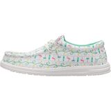 Easy, breezy, canvas material makes these Hey Dude Fishmas Sweater shoes ready to roam. Their easy-on elastic laces ensure a secure fit, while the Flex & Fold design supports healthy feet with their unique shape, giving complete freedom of movement. These printed sneakers are made of an EVA insole and cotton lining. Add a festive touch to your outfits with these slip-on sneakers. Heel pull tab. Round toe silhouette. EVA outsole.