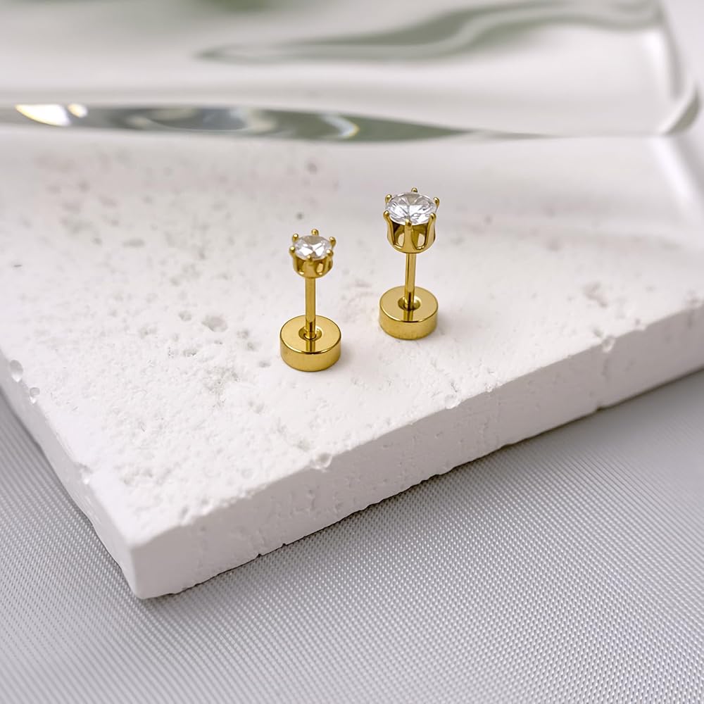 Hypoallergenic Stacks Stud Earring Sets: Small gold Earrings are made of 316L surgical stainless steel for sensitive ears. Skin-friendly without pressure, long-lasting color retention, no burden on ears and easy to wear all day. Gold chain earrings embedded with AAA+ cubic zirconia, it is shiny and lustrous, showing your confidence and charm