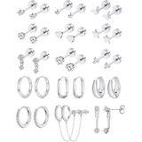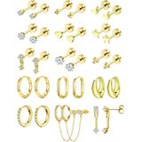 Earring Sets for Multiple Piercing: Gold earring set contains 15 pairs of exquisite earrings, including flat back earrings, hoop earrings, chain earrings and CZ earrings. These surgical steel earrings are fashionable and lovely, which can meet most kinds of wearing needs. Dangle stud and hoop earrings have various perforations, such as cartilage earrings, spiral perforations, first holes, second holes, third holes, tragus perforations and so on. Feel free to match your style
