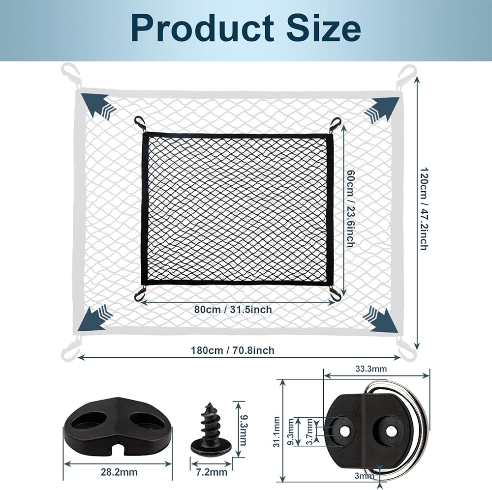 Easy Installation: The car elastic net comes with built-in hooks, allowing you to easily attach it to your vehicle's hooks for quick installation. For vehicles without hooks, the d-ting tie downs can be securely fixed in place using screws, making the setup process simple and fast. It is also versatile enough to be used for tents, furniture, rope nets, and other DIY projects