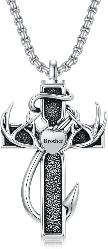 Cross Antler Fish Hook Memorial Gifts: Wearing this necklace, you will leave a good memory for him/her, keeping he/she close to your heart all the time. Never forget grandfather/husband/Friend/Brother/him. This necklace can be worn not only as an ornament but also as a good way to commemorate your loved ones.