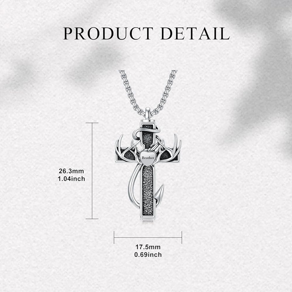 Cross Antler Fish Hook Urn Necklace: The cross is a symbol of faith and hope, and the antler and fish hook are symbols of luck and tradition. Cross Antler Fish Hook Urn Necklace for Ashes expresses the memorial of someone.
