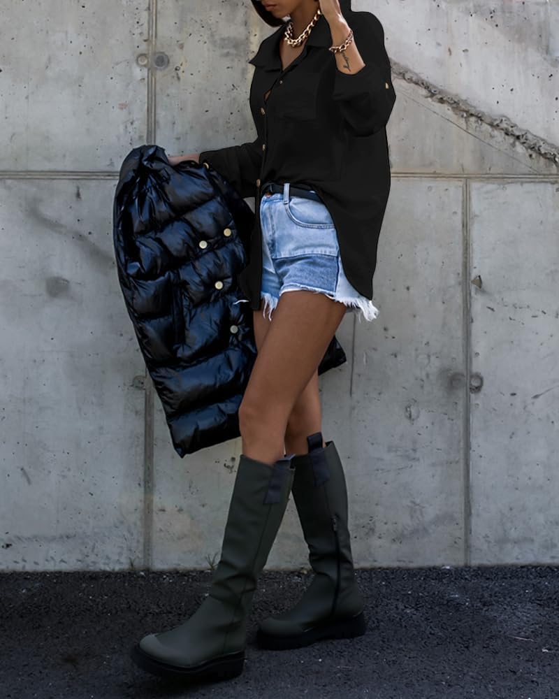 Chic & Relaxed Style: This button-down shirt combines classic style with a relaxed, oversized fit. Perfect for creating effortlessly chic looks