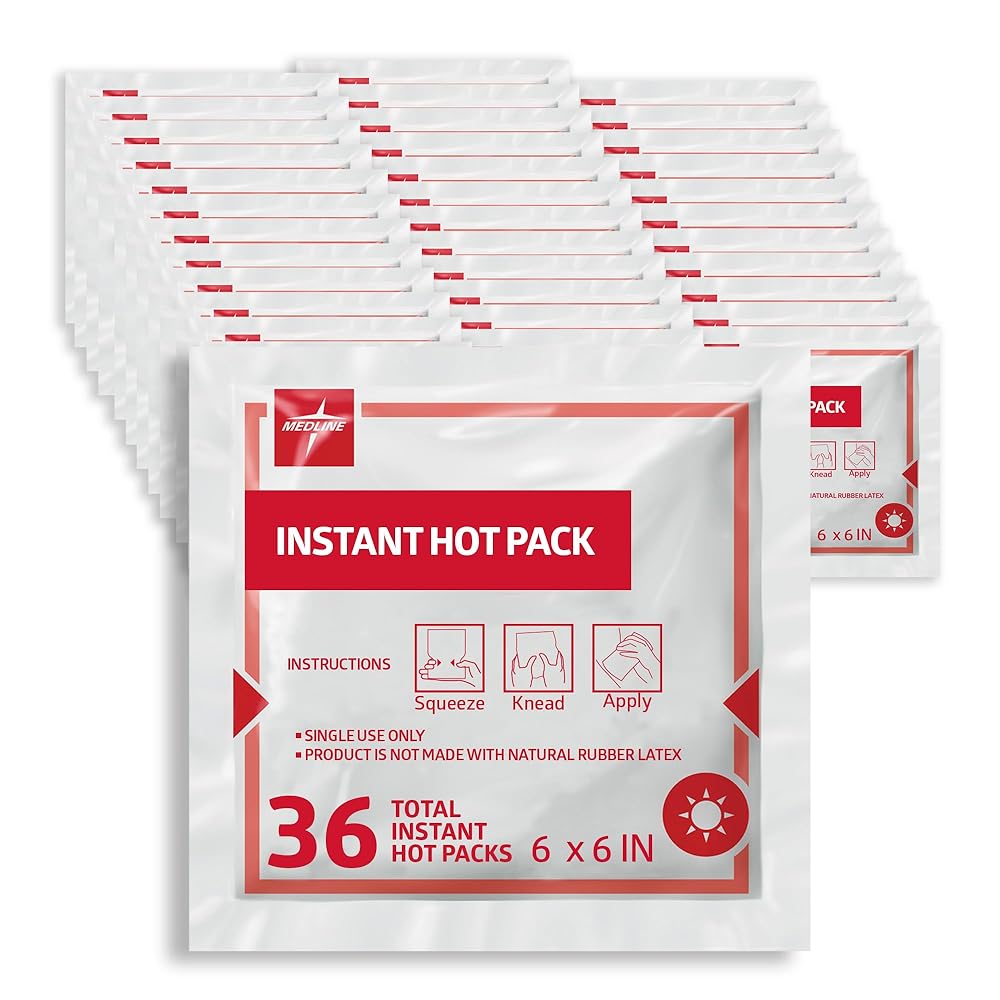 Medline Instant Warm Pack, Disposable, 6" x 6", Economical, 36 per Pack, Heat Packs for Pain Relief, Muscle Soreness and Increased Blood Flow
