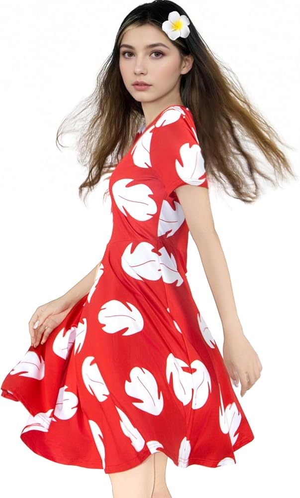 Package Includes: Each Summer Dress comes with accessories as shown, including a red leaf dress paired with a Hawaiian plumeria flower, a pink bo peep dress with a pink headband (blue staff not included), and a blue dog dress with an ear headband. These accessory props add fun to your outfit at festive parties