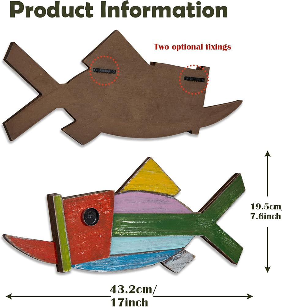 Equipped with 2 metal hooks on the back, the fish wall decor is easy to hang.
