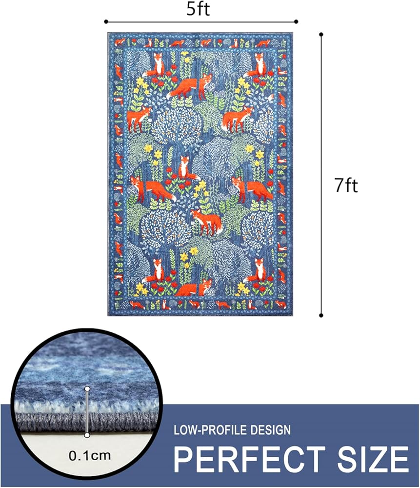 ★Estmy Boho Modern Cute Botanical Floral 4ft Round Area Rugs Non Slip Washable