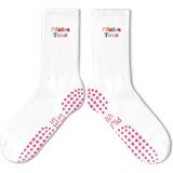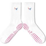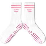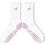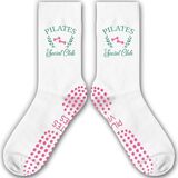 Cute Pilates Socks, Pink Crew Grippy Socks for Studio Reformer Workout Style