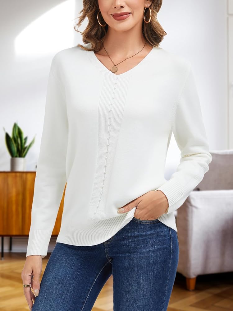 Features: Designed with beads in front, these V Neck sweaters for women are simple and elegant. They will be your go-to piece for your daily outfits