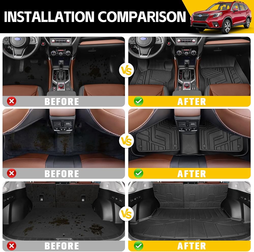 Floor Mat & Cargo Mat for 2019-2024 Subaru Forester Backrest Mats All Weather Floor Liners with Rear Trunk Mat for 19-24 Subaru Forester Accessories(Not Fit Model with Subwoofer in the Trunk)