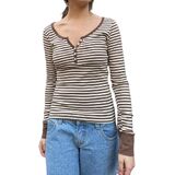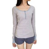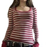 Match: Striped crewneck long-sleeve t-shirt, y2k striped shirt, 90s grunge outfits for women, y2k striped long sleeve top, teen girls fairy grunge clothes, fitted tops for women, match well with your favorite high-rise bottoms, like jeans, skinny pants, leggings, shorts, flats or high heels