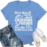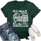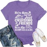 PRINT: Show off your bond with the women's funny friendship quote shirt featuring the playful phrase, "We're more than just cruising friends, we're also accomplices and alibis." A perfect way to rock your BFF tee while sharing some laughs