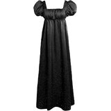 Features - This elegant regency dress is designed with simple and luxurious rhinestones satin fabric, unique puff sleeve, square neck and empire cut waist, fitted smocked back, invisible zipper at the side, elastic waistline, flared A-Line silhouette, long length.