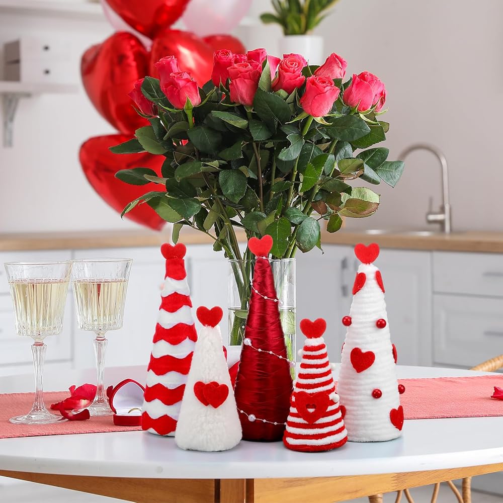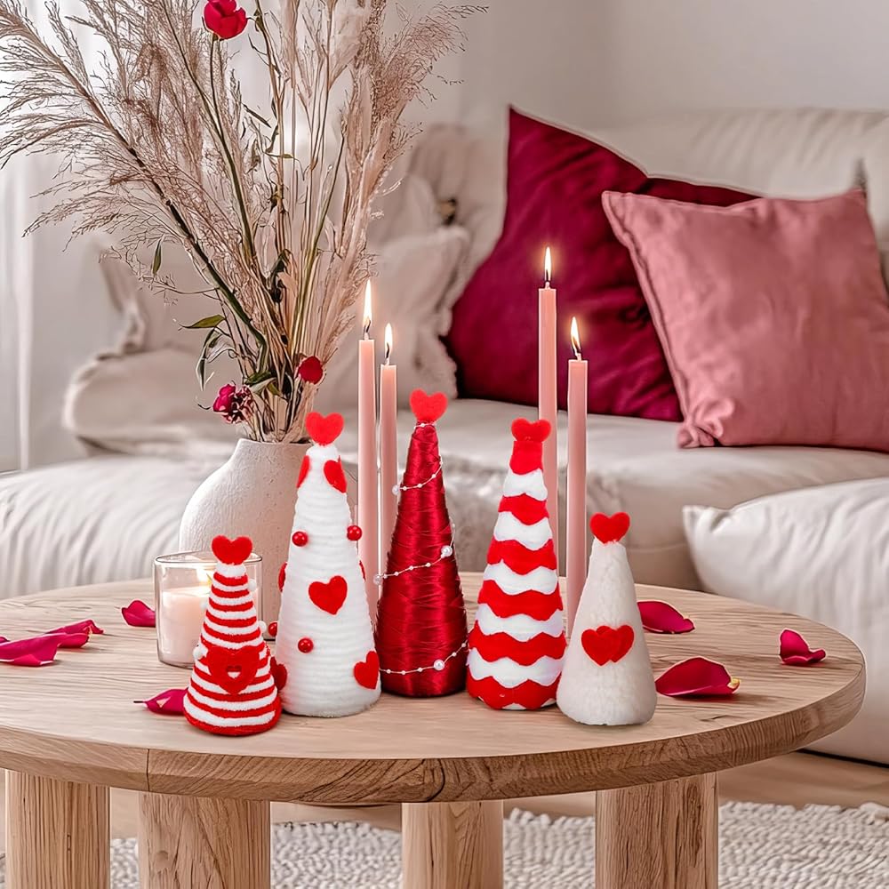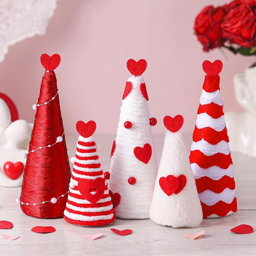 Brighten up your Christmas with our adorable, cute and vintage Chinoiserie cone tree table decorations, with 5 pieces in a package, each of varying sizes, these decorations add a beautiful touch of love and affection to any space, each piece is skillfully crafted from quality, soft cloth material for durability