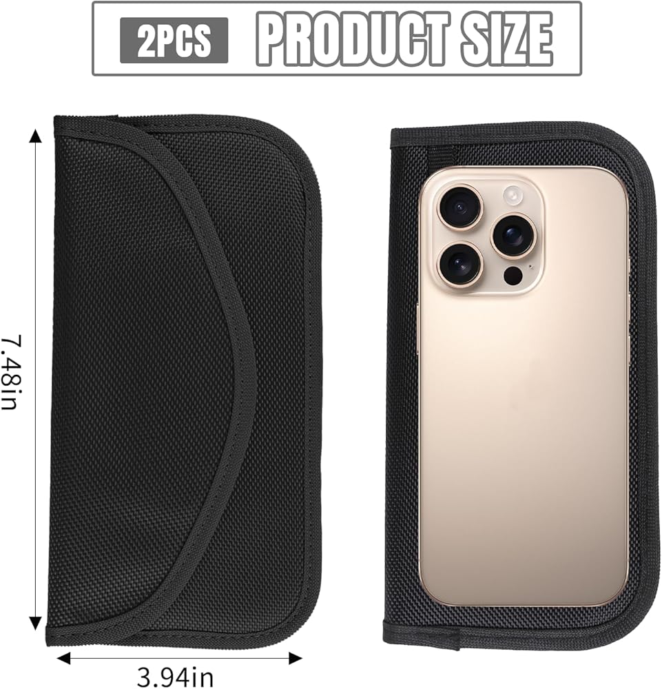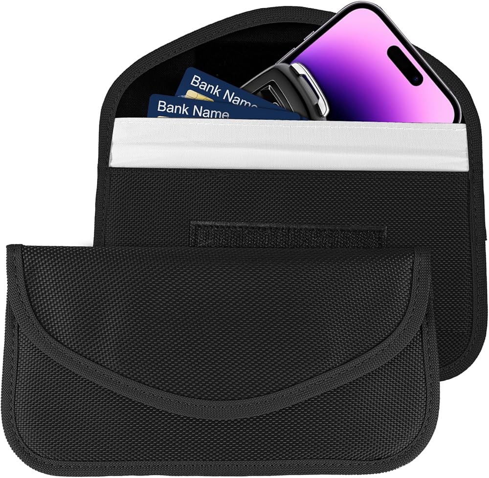 2PCS Faraday Bag for Phones and Car Keys, Keyless Entry RFID Signal Blocking Bag Key Fob Protector, Anti-Theft Faraday Pouch for Cell Phone Privacy Protection, Signal Shielding (Black)
