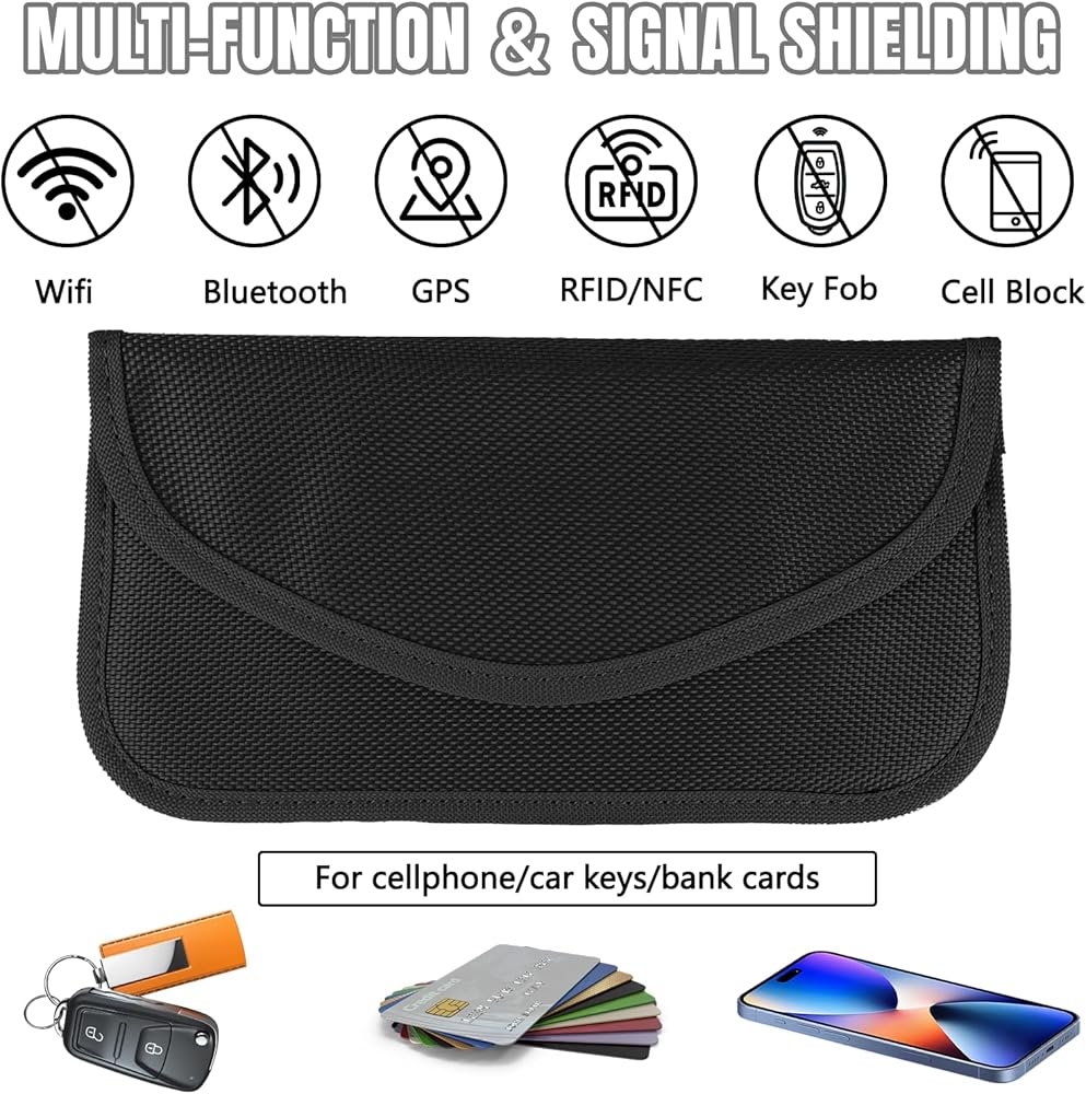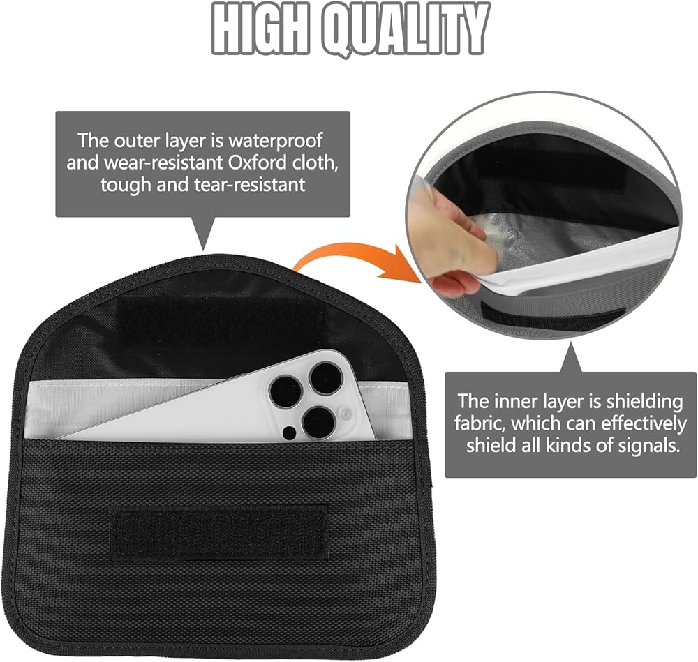 【High Quality】: Its inner layer is shielding fabric, effectively shielding various signals. The outer layer is waterproof and wear-resistant Oxford fabric, which is tough, tear-resistant and durable. It also protects the cell phone and keys inside from scratches and acts as a cushion when accidentally dropped.