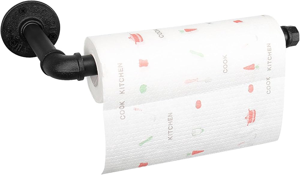 Industrial Iron Pipe Kitchen Paper Towel Holder, Vintage Farmhouse Heavy Duty DIY Industrial Rustic Wall Mount Paper Towel Rack for Kitchen Bathroom (1, Black)