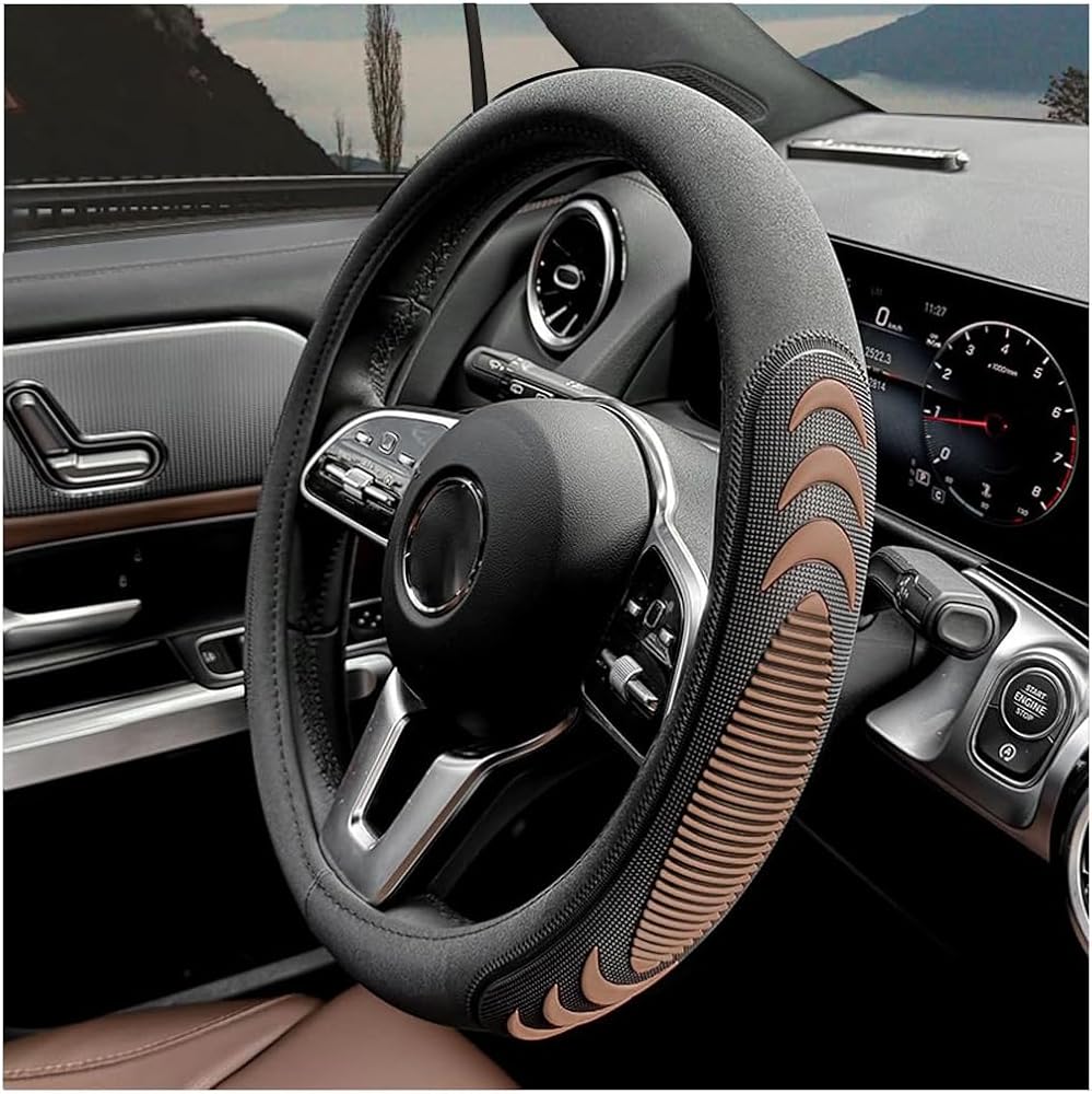 HZEL Car Steering Wheel Cover, 14.5-15" Breathable Vehicle Steering Wheel Protector with Anti-Slip Lining, Comfortable Auto Interior Decoration Accessories, Universal for Truck SUV Sedan (Coffee)