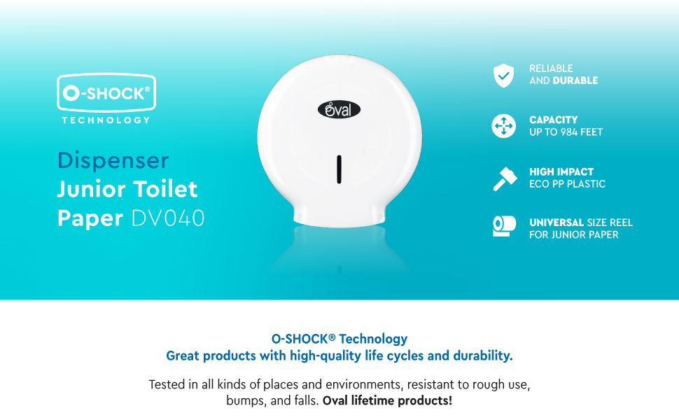 HIGH RESISTANCE: Jumbo Jr toilet paper dispenser made of durable polypropylene designed for use in high-traffic commercial environments. The flexibility of the material makes it ultra-resistant (it has even been tested that an adult person can stand on it)