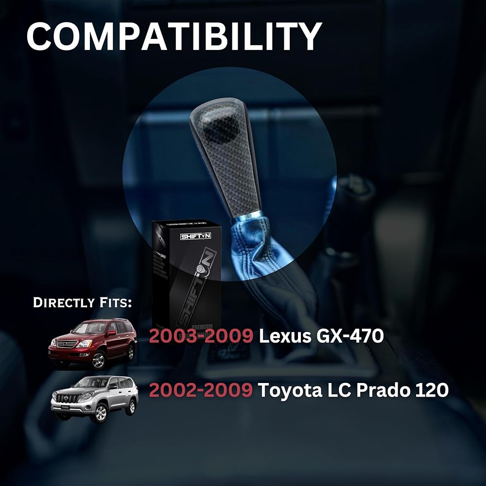 Aftermarket Gear Shift Knob Shifter for Lexus GX470 2003-2009 UZJ12 and for Toyota Land Cruiser Prado 120 2002-2009 (Black Leather/Carbon Fiber Pattern)