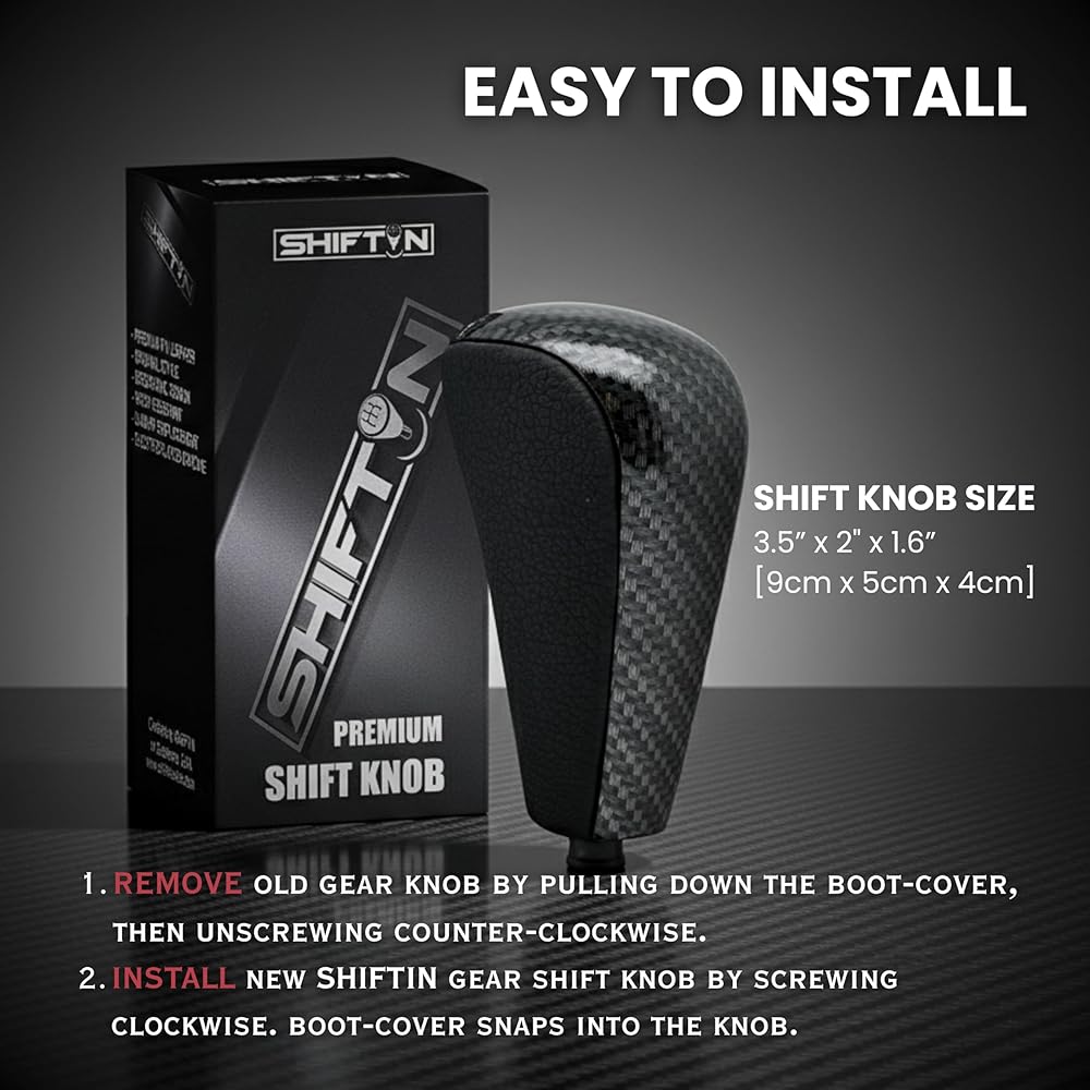 【EASY & QUICK INSTALLATION】- install by twisting shift knob clockwise to screw-in, no tools or modification needed, snaps into the boot-cover.