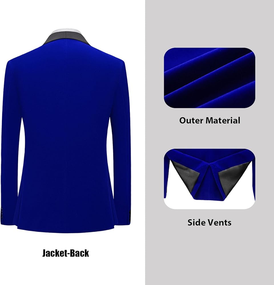 Elegant 3 Piece Design - Includes a tuxedo jacket, velvet vest, and black pants, providing a complete, polished look that ensures versatility and timeless style for weddings, galas, or special occasions.