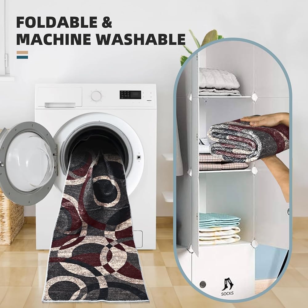 【FOLDABLE & WASHABLE】A new type of foldable material is used in our carpet, different from other rugs, ours are with higher quality and could get back to original condition after usual folding steps. Can also be washed in a washing machine, or just handwash and then air dry