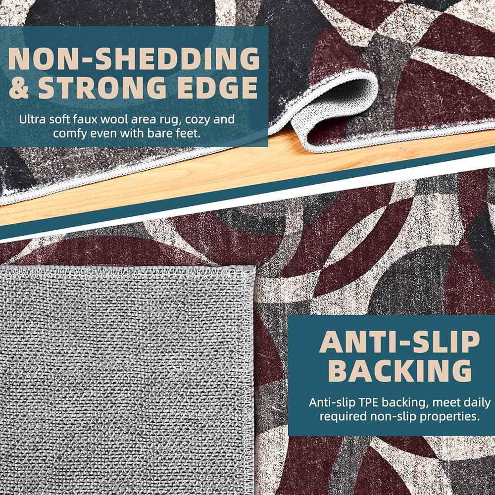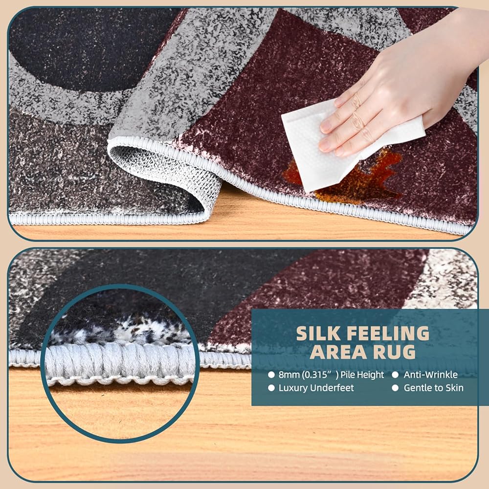 【STAIN-RESISTANT & NO-SHEDDING】YUFANUHO brown, beige and black rugs are made of faux wool material, with fine workmanship heat transfer printing technology. TPE latexes at the buttom of the carpet to prevent sliding, increase security of marble and wooden floors