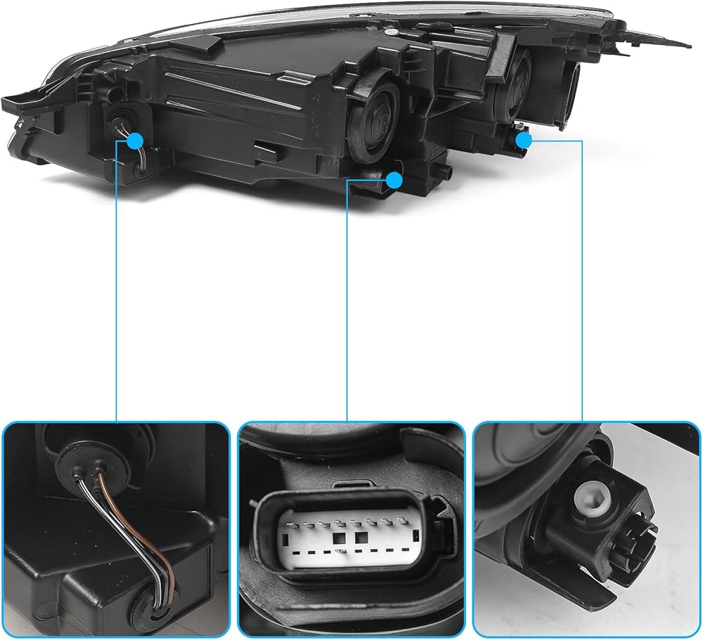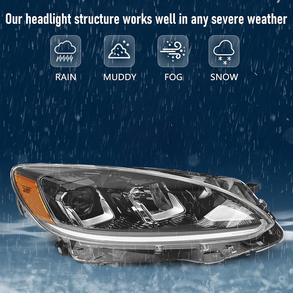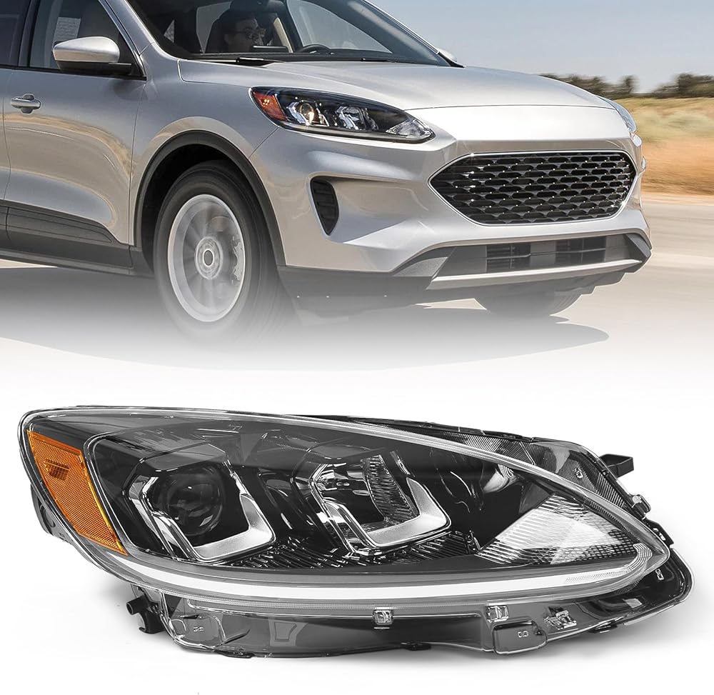 This left-side headlight assembly (OEM LJ6Z-13008-B) is designed for Ford Escape 2020–2022 SE, SEL, and Hybrid trims equipped with halogen lighting systems. It integrates halogen projector low and high beams, turn signal, and parking lamp into one complete, factory-style unit. Constructed with durable materials and a fully sealed housing, it provides long-lasting performance and protection from water, dirt, and road wear. The assembly includes bulbs pre-installed for added convenience. Installation is straightforward with a plug-and-play design, but professional installation is recommended to ensure proper alignment and operation.