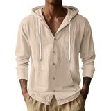 【Design】Mens beach shirts features Long sleeve hooded shirt design, spread collar, button closure, chest pocket, relaxed fit.