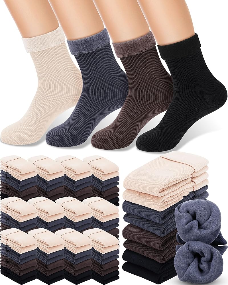 Double Warm Donations: these large amount of winter socks are ideal for giving away to charity, community and homeless in the cold winter, showing your love and care; Also, they are sweet and warmhearted presents to your friends, family members and others