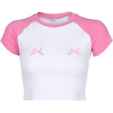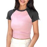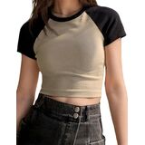 Lancifolium Exclusive! You'll be head over heels in love with this Raglan Sleeve Cute Crop T shirt! light-weight stretch fabric shapes this crop top that has a Round neckline and Fitted short sleeve . The cute fitted curve ends at a flirty cropped hem.