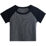 Crewneck crop tops / Long sleeve and short sleeve cropped top / Cute raglan sleeve tee/ Baddie harajuku / knit fitted / Solid casual basic t-shirt;