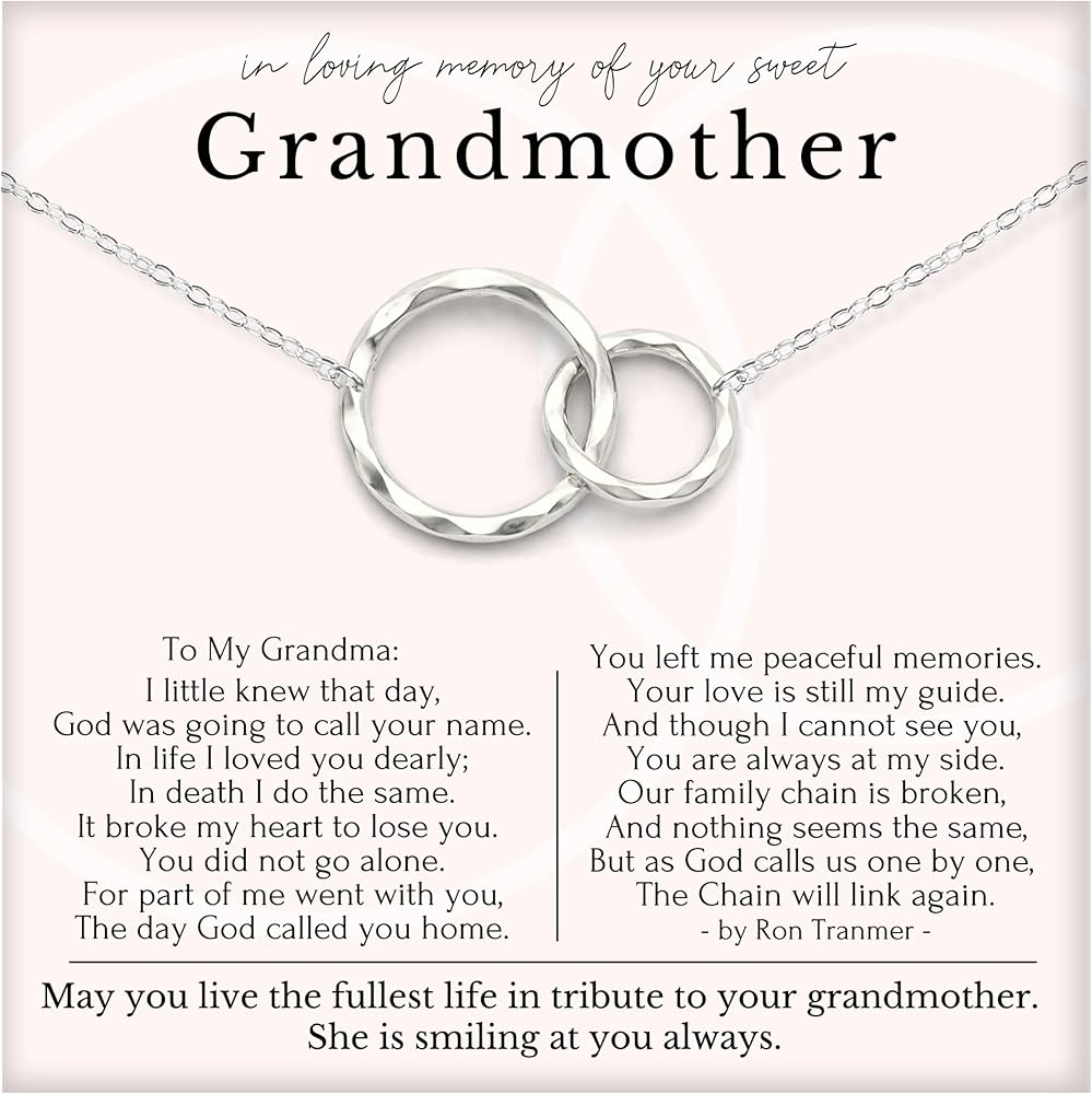 MEMORIAL JEWELRY: A beautiful double circle necklace for women in memory of a lost grandma. This piece of jewelry is the perfect sentimental keepsake symbolizing our cherished link to our loved ones in heaven.