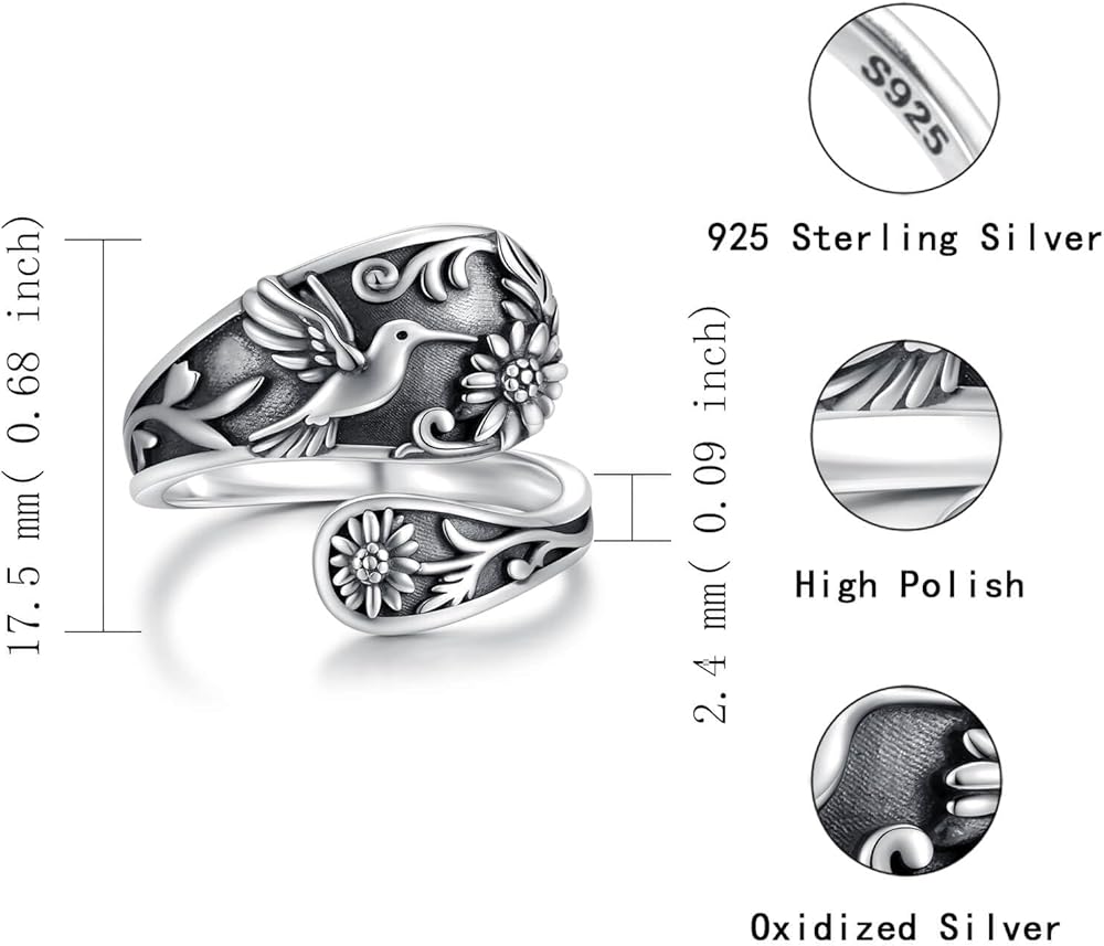 Butterfly Spoon Ring for Women 925 Sterling Silver - Adjustable Vintage Antique Thumb Rings Nature-Inspired Jewelry Gift for Her