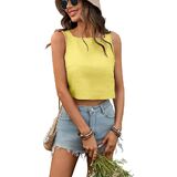Design: Features a chic square neckline, wide straps, cropped fit, and back keyhole closure, ideal square neck sleeveless tank top, linen crop top, or cropped linen shirt for everyday summer wear