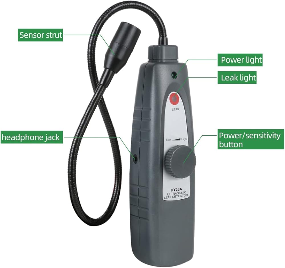 [Wide Range of Applications]: Ultrasonic leak detectors can detect air or liquid leaks by detecting ultrasonic waves caused by high-pressure leaks. It can be tracked on the outside of screens, windows and door seals to detect and locate leaks, and is widely used to detect cracks in pipes, valves, air conditioning systems, fuel tanks, and other sealed compartments.
