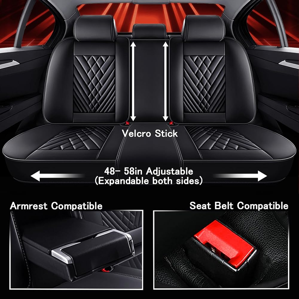Durable and Waterproof:Made from premium Nappa leather, Our seat covers for cars are durable, splash-proof, stain-resistant and wear-resistant. Easy to maintain, just wipe waterproof seat covers with a damp cloth for effortless cleaning.