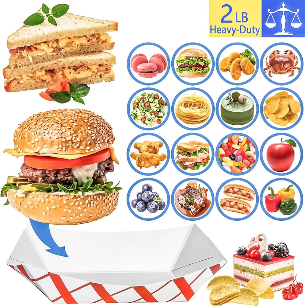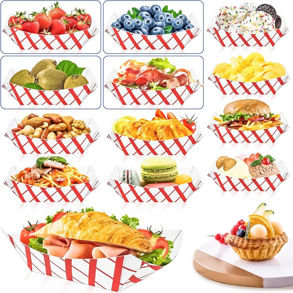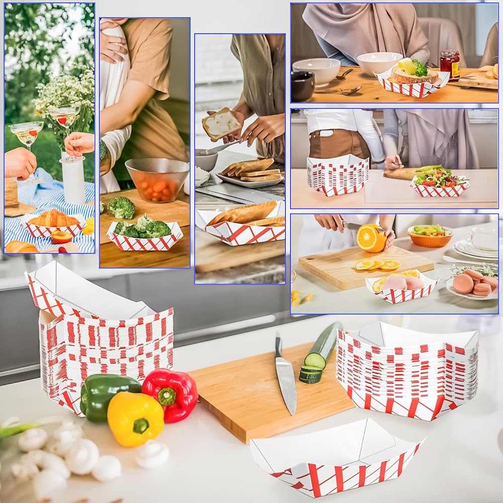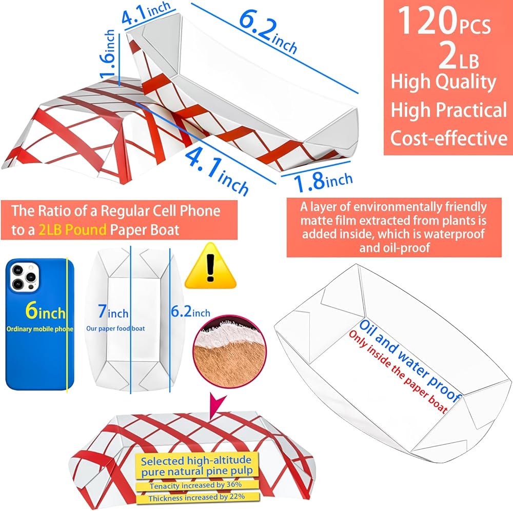 Package includes 120 pcs karft food seving boat, enough for your various needs.These 2 lb paper food trays are 6 1/2" x 4 5/8"x 1 3/4"